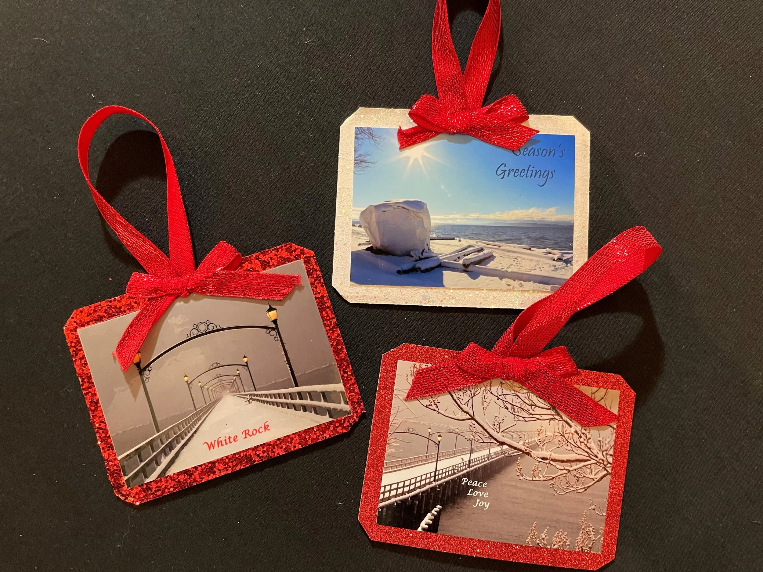 Photo tree ornaments $7 each for large 4” round or 2 for $12. $6 each for 3” square or 2 for $10